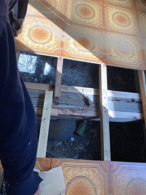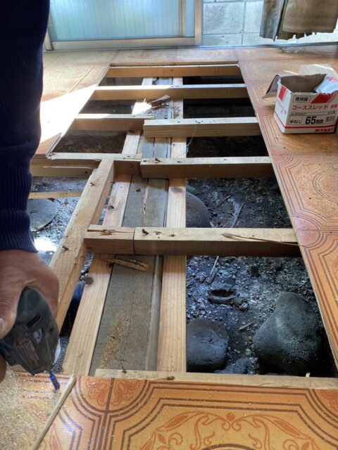 シロアリ被害が確認されたため、まずは床を取り外して適切な補修工事を施しました。